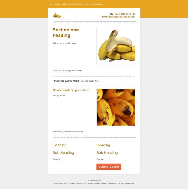What I’m going to teach you today is how to build repeating content areas, which look different, but use the same piece of code. You can then hide certain parts of the code to alter the layout. You may think this sounds pretty simple but there are a few things to take into account; namely who will be using your template, what skill level they have, and how compatible you want to make the template with email clients such as the dreaded Lotus Notes.